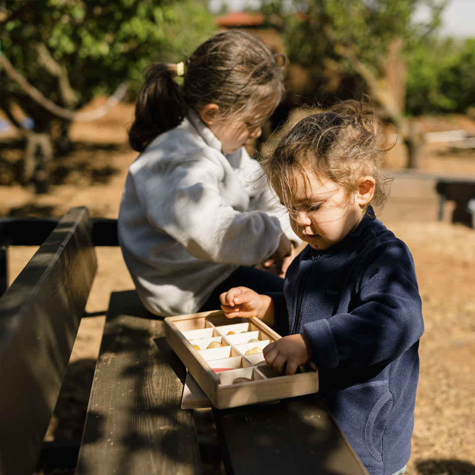 Ofrecemos propuestas abiertas y materiales variados —principalmente naturales y reales— que conectan con los sentidos y fomentan la creatividad, la concentración y el aprendizaje significativo.